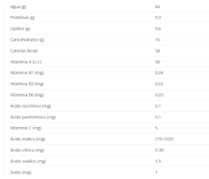 Lo cierto es a nivel nutricional, esta fruta nos aporta los siguientes elementos por cada cien gramos que consumimos: